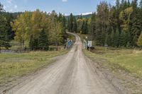 This stunning stock photo features a picturesque dirt road leading to a charming wooden rail bridge in Alberta, Canada. The road is surrounded by lush green grass and tall trees, creating a beautiful natural environment. The bridge itself is adorned with colorful street signs, adding a touch of vibrancy to the scene. The clear blue sky and fluffy white clouds overhead complete the idyllic highland landscape. The road surface is composed of gravel, making it perfect for off-road adventures. The image captures the tranquility and serenity of the Canadian wilderness, making it an ideal choice for nature-themed projects.