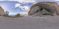 A scenic dirt road in Mallorca, Spain, winding along the cliffside with breathtaking views of the ocean. The clear sky and open space create a serene coastal landscape in the Balearic Islands.
