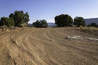 A scenic drive through Utah's desert landscape. Curving road winds through red rock canyons and rugged slopes. Clear sky above contrasts with rock walls and vegetation on Cedar Mesa.