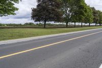 A picturesque road stretching through the lovely Canadian countryside in Ontario. The asphalt surface glistens under the bright daytime sky as it winds through the lush green landscape. Tall trees and woody plants line the rural areas along the road, adding to the natural beauty. In the distance, fluffy clouds float in the sky, creating a peaceful and serene atmosphere. This road is an important piece of infrastructure, connecting rural communities and supporting local agriculture. It is a typical thoroughfare in Ontario, offering a scenic drive for travelers. This image captures the essence of the expansive nature and tranquil surroundings near Toronto.