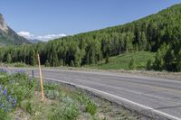 This beautiful stock photo captures the picturesque scenery of Crested Butte, Colorado. The image showcases a clear sky and an abundance of vegetation, including a diverse plant community. The landscape features a sloping mountain with an elevated road surface made of asphalt, leading towards the stunning Slate River Road. The photo was taken during the day, highlighting the high elevation and lush forest surrounding the area. Experience the natural beauty and tranquility of this mountainous region in the USA.