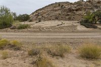 This stock photo features a stunning view of the San Rafael Swell in Utah, USA. The landscape is dominated by red rock formations, with mountains in the background. The terrain is a mix of sand, dirt, and grass, creating a beautiful contrast. The photo captures a road cutting through the desert, surrounded by trees and vegetation. The cloudy grey sky adds a sense of gloom and drama to the scene. It is a perfect representation of the diverse and captivating nature found in San Rafael Swell.