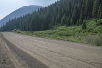 This breathtaking stock photo captures the beauty of Colorado's Crested Butte region. A dirt road is winding its way through a picturesque landscape, flanked by lush trees and vegetation. In the distance, a towering mountain adds an awe-inspiring backdrop. The image showcases the natural environment of this rural area, with its alpine scenery, blue skies dotted with fluffy white clouds, and vibrant green grass. The road's surface, a mix of dirt and gravel, perfectly complements the rustic charm of the surroundings. This photo is an ideal choice for projects that require visuals of scenic landscapes, road trips, or the outdoors in general.