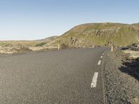 Scenic Road in Iceland with Green Hills and Blue Sky