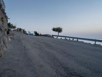 Beautiful dawn in Mallorca, Spain. The coastal road stretches along the ocean, with clear skies overhead. The Armco barrier provides safety along the scenic route. Experience the stunning nature and landscape of the Balearic Islands.