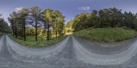 a road curves around some trees in a virtual panorama environment and then you have two of them