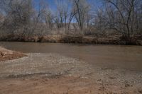 A scenic view of the red rock landscape in Utah, USA. A dirt road winds through the grassy plains, leading to the Capitol Reef and Cathedral Valley. The Fremont River flows alongside, surrounded by lush vegetation and towering trees.