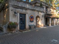 In the charming town of Sedona, Arizona, an old-style storefront invites visitors to shop. Potted plants create a welcoming entrance. Clear skies paint a perfect backdrop for a day of shopping in the USA.