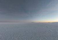 A serene dawn over the Salt Lake in Utah, USA. The vast open space of the desert landscape is interrupted by a lone skier. Contrails add intrigue to the natural beauty.
