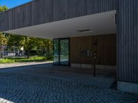 Berlin's urban landscape featuring modern architecture and cobblestone streets. Clear skies reveal hard shadows beneath the city's design, offering a glimpse of European city life.