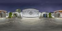 A grand mansion in Shanghai, China, illuminated by artificial light at night. The entrance and courtyards showcase classic Chinese architecture and symmetrical design. A glimpse into the city's historic past.
