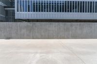 This is an image of a modern concrete office building in the business district of Shanghai, China. The grey facade and parallel lines give the building a sleek and urban design. In front of the building, there is a yellow fire hydrant on the sidewalk, adding a pop of color to the scene. The composition showcases the material properties of concrete, steel, and composite materials. This photo represents the bustling city life and the contemporary architecture found in Shanghai.