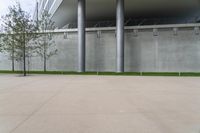 Modern architecture in the heart of Shanghai's business district. An open space with a striking concrete structure and a row of cylindrical columns. Surrounded by the bustling city life of Suzhou and Hangzhou.