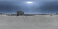A 360-degree view of a skate park near the parking lots in downtown Los Angeles, California. The city skyline and skyscrapers provide a stunning backdrop as a skateboarder performs tricks. The clear sky and urban design make for a perfect day of skateboarding.