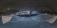 this is an image of a fish eye view of a skate park and tunnel area