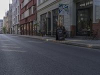 A person enjoying a ride on a skateboard through the modern architecture and residential buildings of Berlin, Germany. The street is lined with trees and features bustling shops, cafes, and restaurants. The urban design and European charm create a vibrant and inviting atmosphere for locals and tourists alike.