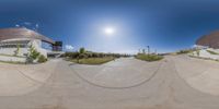the skateboard ramp is empty of people as it is 360 - turnable into a fish eye lens