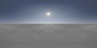 A sunny day in an open space with a skateboard ramp. The concrete surface reflects the clear sky and the sun is visible in the background. A perfect spot for skateboarders to enjoy the outdoors.