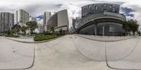 A skateboarder performs tricks in the air over a ramp, with Miami's urban business district in the background. The concrete streets and office buildings create a cityscape filled with energy.