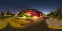 Skateboarder on a Colorful Paint-Covered Ramp in the Night-Time Park