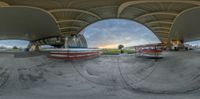 an image looking at a skateboard going in a circular shot on an outdoor ramp