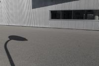 This captivating stock photo features the shadow of a person riding on a skateboard amidst the urban landscape of Toronto, Canada. The black-and-white image showcases a stylish composition, with a metal wall and a large window in the background. The sleek skateboard glides across the asphalt road surface, contrasting with the grey shades of the city. The modern architecture of the office building adds an element of urban design to this bustling business district. The photograph captures the dynamic energy of a day in the city, showcasing the convergence of business and leisure in Toronto's open spaces.