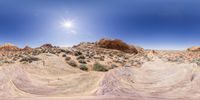 an old image of a man in the desert taking a photo of himself on a skateboard