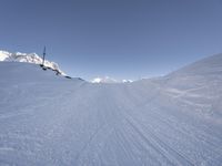 A ski slope in the French Alps, surrounded by breathtaking mountainous landscape. Clear skies and snow-covered peaks make it a perfect winter tourist attraction. Experience the thrill of skiing down the slopes in one of Europe's most iconic mountain ranges.