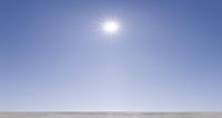 This stunning stock photo captures a person skiing across a vast frozen surface in the USA. The clear sky and bright sunshine create a picturesque landscape, as the skier glides through the open space. The sun shines brightly overhead, adding to the beauty of the scene. The concrete surface beneath the skis provides a smooth and steady ride. The image perfectly captures the essence of a sunny day in nature, with the sun visible in the clear sky. The HDR light enhances the overall quality of the image. This stock photo is perfect for showcasing the beauty of outdoor activities in the USA.