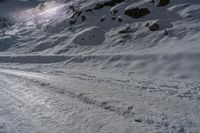 Skiers navigate through the snowy slopes of Italy's glacial mountain range. The off-road track curves around trees, creating a picturesque winter landscape. The skier starts to ski down the slope, with clouds and freezing temperatures adding to the beauty of the scene.