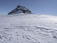 the snow covered mountain with several tracks and tracks left on it in the snow of the day