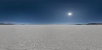 a panoramic image of an expanse of snow in the desert under a bright sun