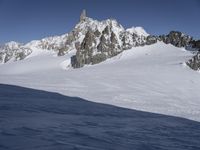 A breathtaking view of the snow-covered Italian Alps. The clear sky provides a stunning backdrop to the majestic mountain range. Tourists can enjoy skiing on the glacier, while taking in the panoramic vista of the French Alps.