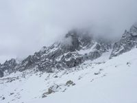 A breathtaking view of the snow-covered Mont Blanc in the French Alps. The open space highlights the beauty of nature in winter. The clouds add a touch of mystery to this stunning European landscape.