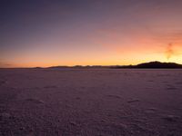 A picturesque view of a snowy field in the desert of Salt Lake City, Utah. The mountains and clouds in the background create a stunning contrast against the clear sky. The image captures the beauty of nature during dawn or sunset time, with the warm colors painting the landscape. The photo showcases the vast open space and the tranquility of the desert. The dark silhouette of the mountains adds depth to the scene. This captivating image is perfect for projects related to nature, landscapes, or travel in the USA.