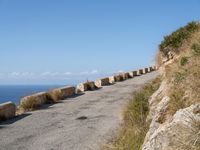 A coastal road in Mallorca, Spain, with clear skies and the sparkling blue ocean on one side. The landscape is a perfect blend of nature and infrastructure. The Armco barrier ensures safety along the road.
