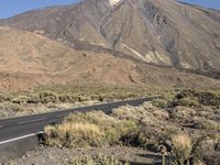 A rugged asphalt road winds through the mountainous landscape of Tenerife, Spain. The clear sky and wild vegetation add to the beauty of this European highland. A perfect day for a nature adventure.