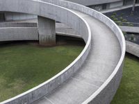 A modern architectural marvel in Spain, this circular spiral pathway surrounds a grassy area, creating a harmonious blend of urban and natural elements. The elevated design adds a touch of grandeur to this industrial city.