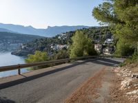 A coastal road in Mallorca, Spain, winding along the ocean with a clear sky above. The landscape showcases the natural beauty of the Balearic Islands. A peaceful day spent exploring the scenic routes and picturesque jetties.