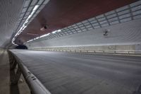 A dark city street illuminated by artificial lights. Steel Armco barriers and concrete roads create a symmetrical and parallel structure. Metal guard rails line the road, providing safety. The night creates a stunning contrast.