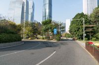 A scenic view of Guangzhou, a vibrant city in Guangdong province of China. The photo captures a straight road lined with modern urban buildings under a clear sky during the day.