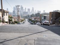 An urban cityscape from Los Angeles on a clear day, showcasing straight roads amid suburban and residential areas. Asphalt pathways define the vibrant city life of California, a quintessential view of urban USA.