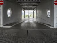 A straight road in Berlin, lined with modern architecture and concrete streets. The urban design creates open space in the city. The parking deck adds to the modern architectural style.