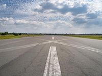 A view from above of a straight road in Berlin, Germany. The road surface is made of asphalt and leads through a landscape of fields and parks. Clear skies and open spaces create a tranquil and recreational atmosphere.