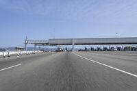 Straight Road Overpass Bridge and Buildings