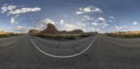 a 3d photo of a wide open desert road showing the desert mountains and the empty side of the road
