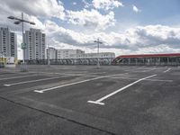 This image showcases the modern architecture and city life in Berlin, Germany. The landscape features a clear sky with clouds, and the urban design is highlighted by the presence of roads, asphalt, thoroughfares, and street lights. The buildings in the residential area stand tall with their windows reflecting the open spaces and vegetation nearby. The image captures the vibrant energy of the city, with the parking decks and garage contributing to the busy atmosphere. This photo represents a typical day in Berlin, a city known for its innovative urban design and captivating architecture.