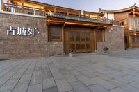 A picturesque view of an old village in Yunnan, China. The historic architecture and classic facades give a sense of traditional Chinese culture. Tourists explore the charming streets and visit the various shops and restaurants. The clear sky and artificial lights create a vibrant atmosphere.