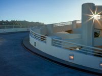 Sunshine casts a hard shadow across a suburban parking lot in Los Angeles. The clear sky of dawn adds a vibrant touch to the residential neighborhood. A perfect start to a sunny day in the USA.