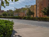 Suburban residential area in Egypt showcasing modern architecture and urban infrastructure. Paver road lined with modern buildings under a clear sky. A typical day in the unique African architecture of Egypt.